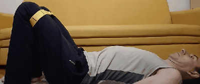 – Poziția de start: Culcat pe spate cu tălpile pe podea, genunchii flexați.