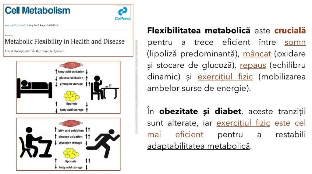 Subiectul flexibilității metabolice a devenit proeminent în discuțiile despre sănătate și nutriție, deși termenul este adesea utilizat într-un mod imprecis. Unul dintre motivele pentru care acest subiect a intrat în atenția publicului este prezența unor experți în nutriție pe platforme populare, care adesea fac afirmații nesusținute sau interpretează greșit concepte cheie. Un fapt-cheie susținut: Conform literaturii științifice, flexibilitatea metabolică este definită ca abilitatea organismului de a comuta între diverse surse de combustibil (carbohidrați, grăsimi alimentare, grăsimi corporale) în funcție de disponibilitatea acestora pentru a produce energie. Persoanele cu rezistență la insulină, de exemplu, au o flexibilitate metabolică afectată, având dificultăți în a utiliza eficient substraturile energetice.