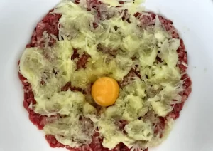 - Pune carnea într-un bol mare și întinde-o bine pe pereții acestuia.