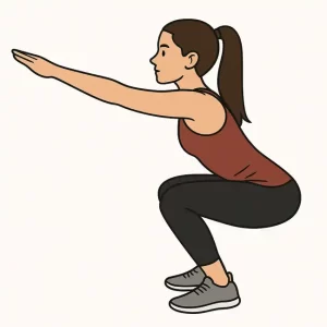 Începe mișcarea cu alunecarea palmelor pe coapse, explicată în Pauza de un minut, dar continuă mișcarea până când ajungi cu coapsele aproape de orizontală și cu brațele înainte-sus.