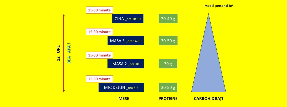 Bun! Deci, ca să rezumăm ce am extras din experiența asta personală. Avem mese structurate, trei sau patru pe zi.