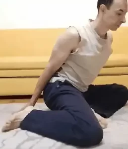 1. Stretching cu răsucirea trunchiului de pe genunchi – 3x